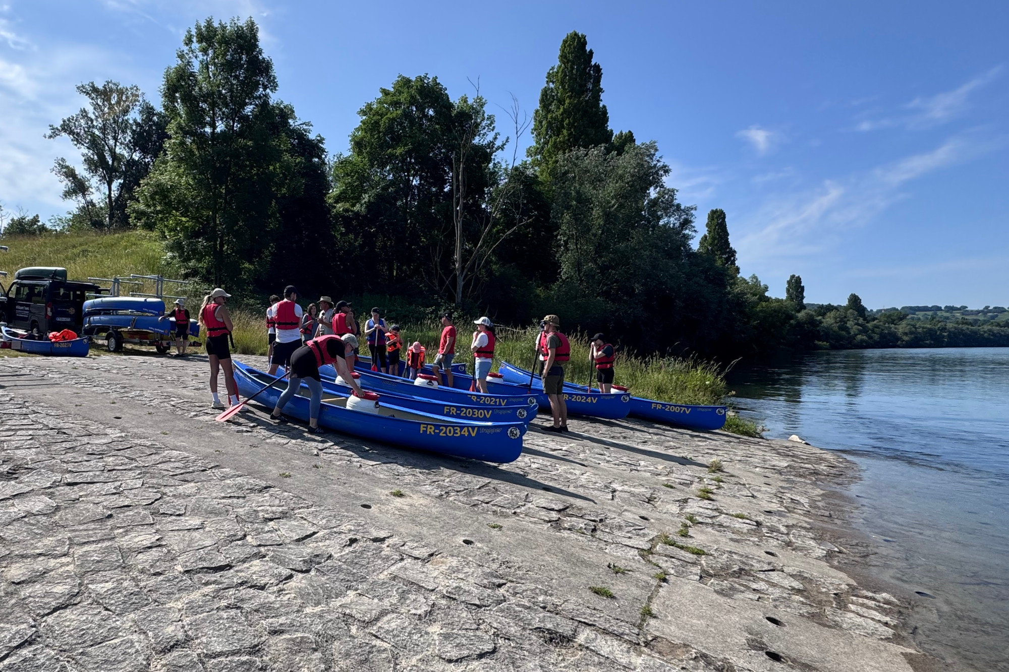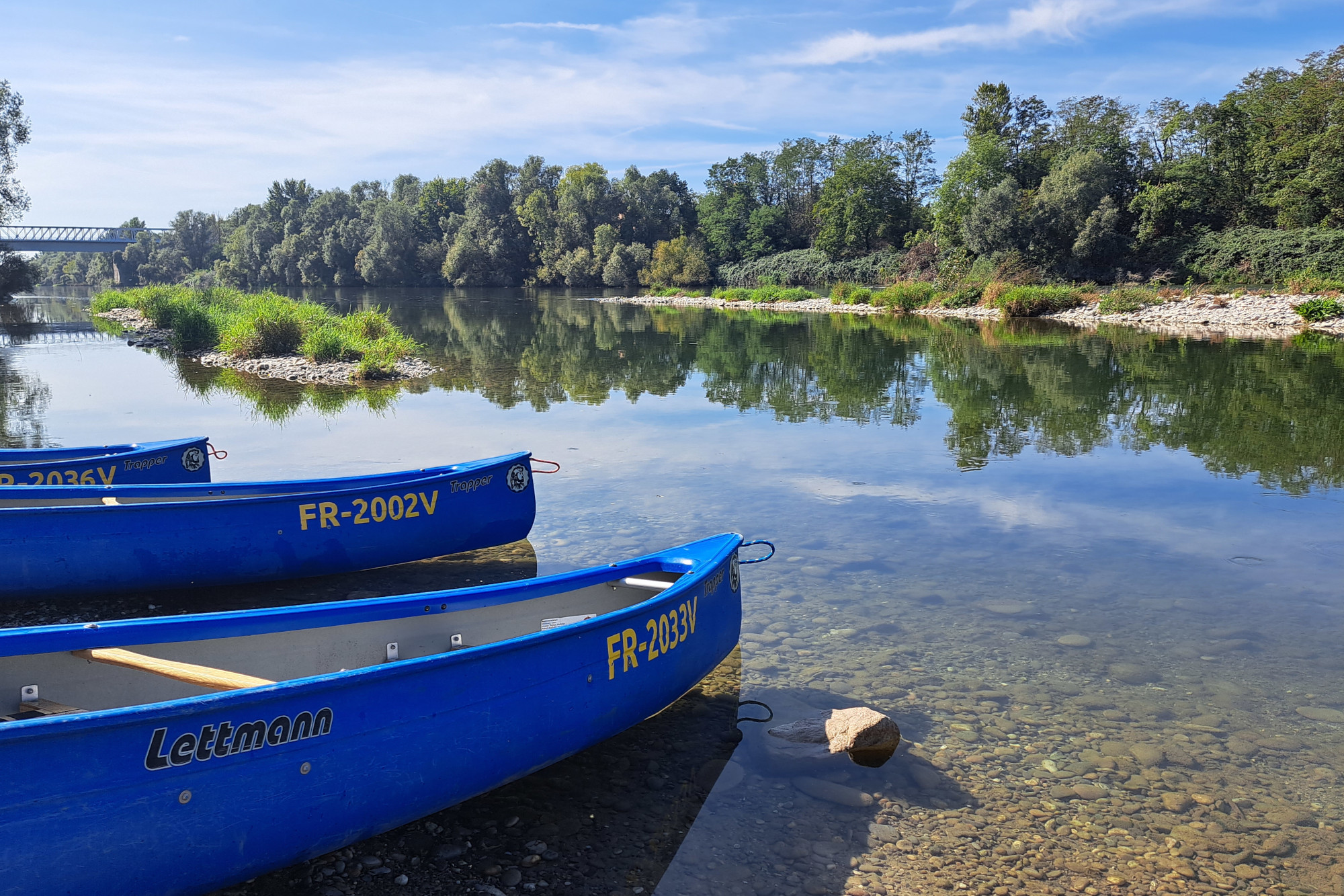 Nach der Einweisung durch unseren Guide starten die Teams ins Abenteuer und bekommen schnell ein sicheres Gefühl für das Steuern. Entspannt gleitend erreichen wir nach knapp einer Stunde die Rampe bei Steinenstadt und machen eine Pause im Schatten am Ufer. Im zweiten Abschnitt wechseln die Fließgeschwindigkeiten leicht, dazu kommen mehrere kleine Inseln und schöne Uferbereiche. Das Ziel ist Neuenburg an den Rheingärten, dem Gelände der Landesgartenschau 2022. Die Tour ist sehr leicht zu paddeln und für alle Altersgruppen und Gruppengrößen bestens geeignet.
