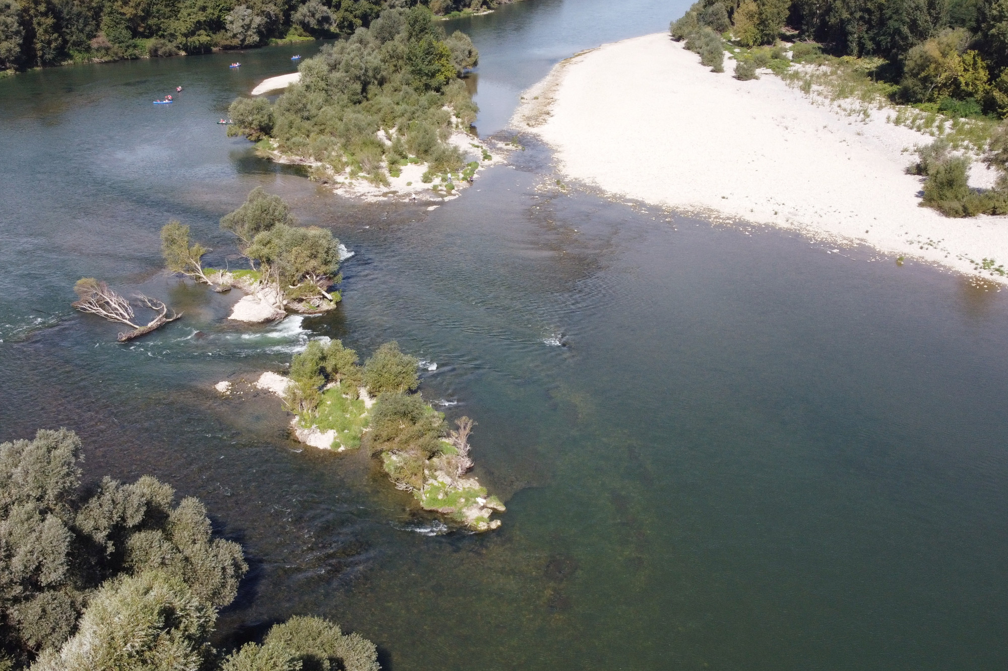 Inseln und kleinere Stromschnellen im Fluss – etwas wilder geht’s auf dem Altrhein ab Istein zu